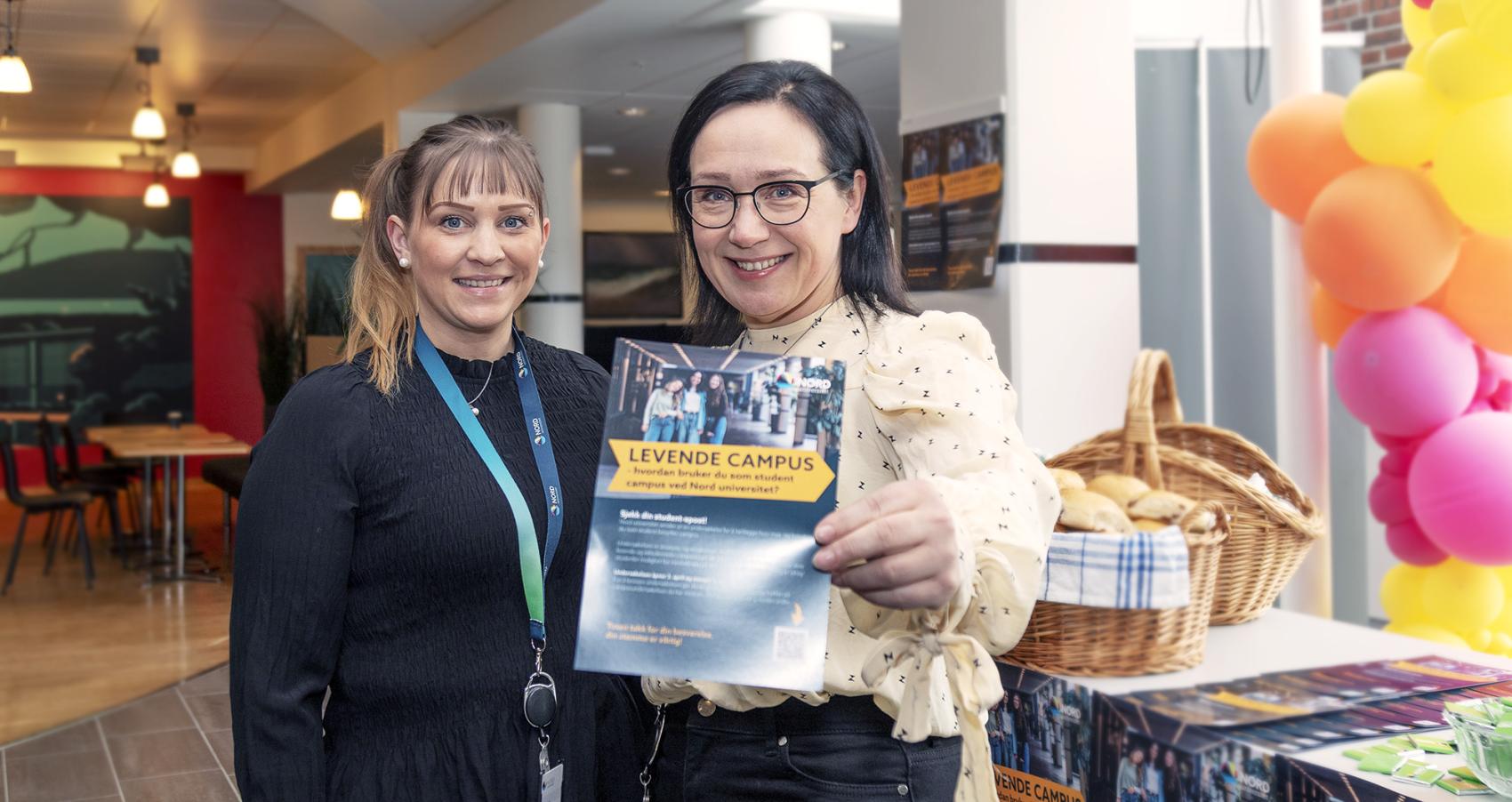 Positive til spørreundersøkelse om levende campus: Fra venstre studentene Ane Dorthea Johansen og Tora Løvseth, og rådgiverne Malin Birgitte Olsen og Janicke Toxen Flack ved Nord universitet. Foto: Svein-Arnt Eriksen.