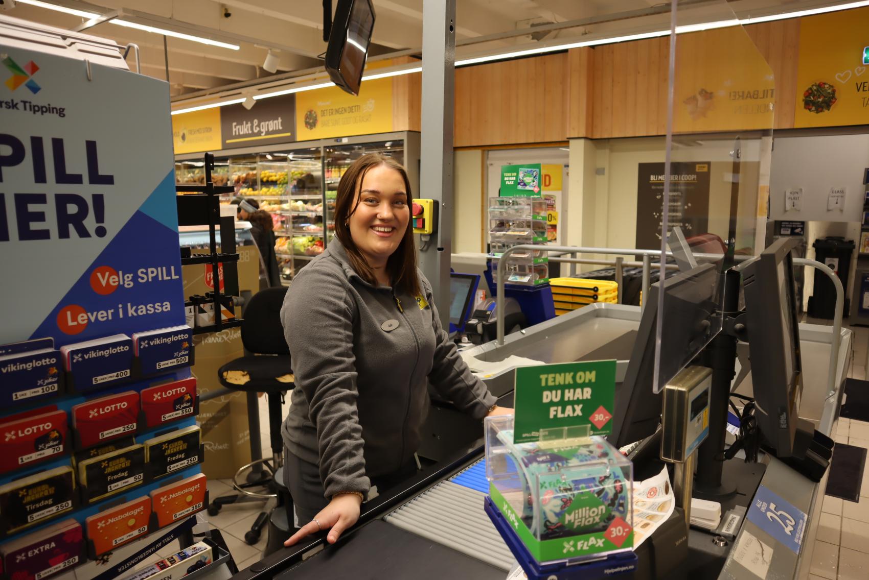 – Det er en del skolearbeid, med vurderinger og arbeidskrav, men ikke så mye at jeg ikke har overskudd til å jobbe litt ved siden av, sier Mæhlum Karlsen. Hun har deltidsjobb på Coop Prix ved siden av studiene.