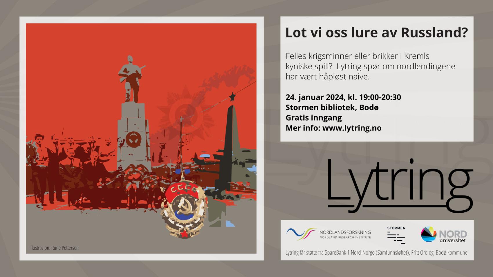 Aas, som jobber ved Nord universitet, sitter i panelet onsdag 24. januar, når Lytring inviterer til debatt i Stormen bibliotek for å diskutere om vi har latt oss lure av Russland. Har vi nordlendinger rett og slett vært håpløst naive i vårt forhold til stormakten i øst?